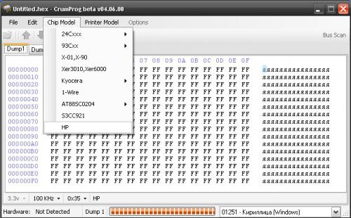 Обрабатываются программой (Chip Resetter AT88SC0204C/CA, 24Cхх, 93Схх, Xerox01/90, DS2431, DS2432, DSQ8, S3CC912/921, Xerox-6000, Kyocera, HP, 5ME3, DEBUG) следующие модели:
